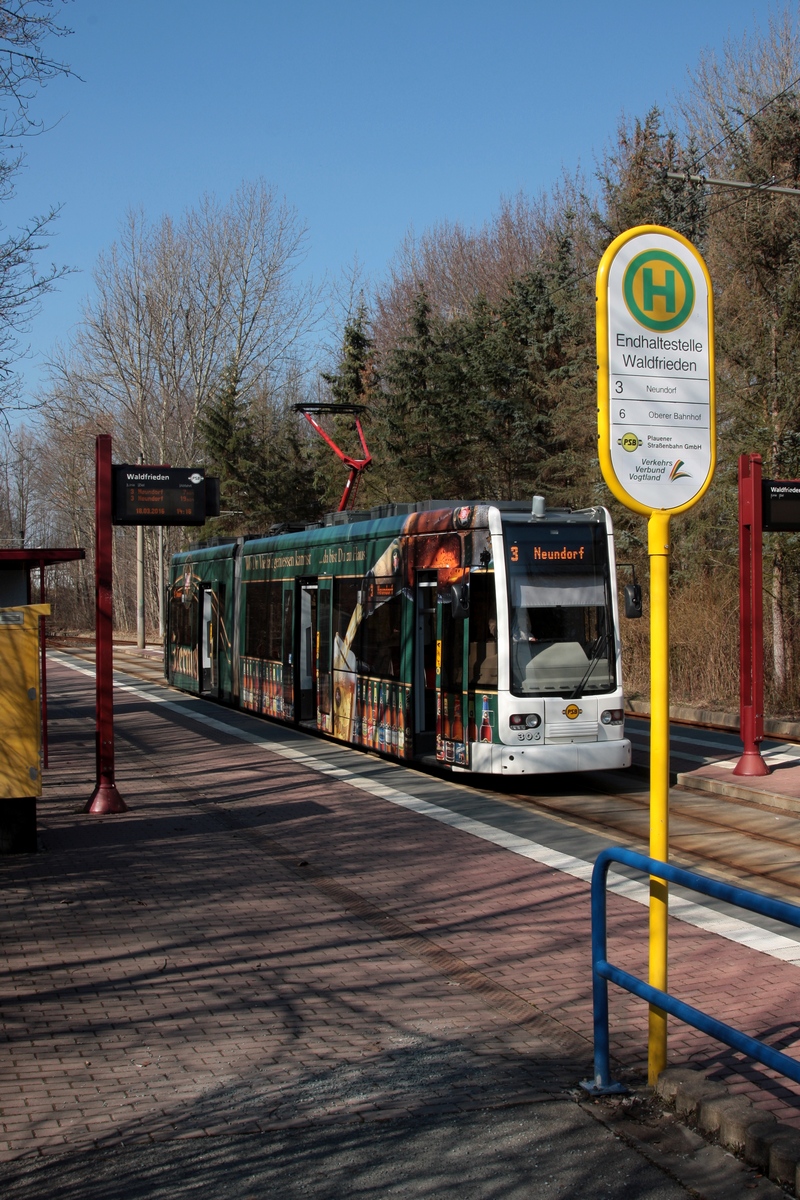 PSB 306 (Bombardier Bautzen, NGT6, Bauj. 2014) an der Endhaltestelle Waldfrieden am 18.03.2016