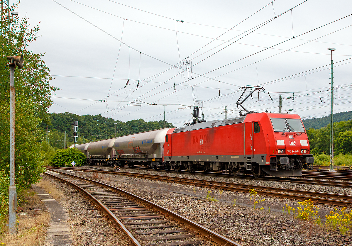Die 185 245-8 (91 80 6185 245-8 D-DB) der DB Cargo Deutschland AG fährt am 16.07.2016 mit einem gemischtem Güterzug durch Betzdorf(Sieg) in Richtung Siegen.