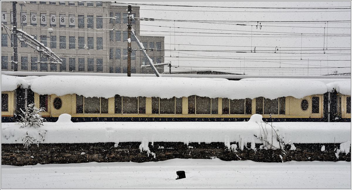 Eingeschneite Alpine Classic Pullman Wagen in Landquart. (14.01.2017)