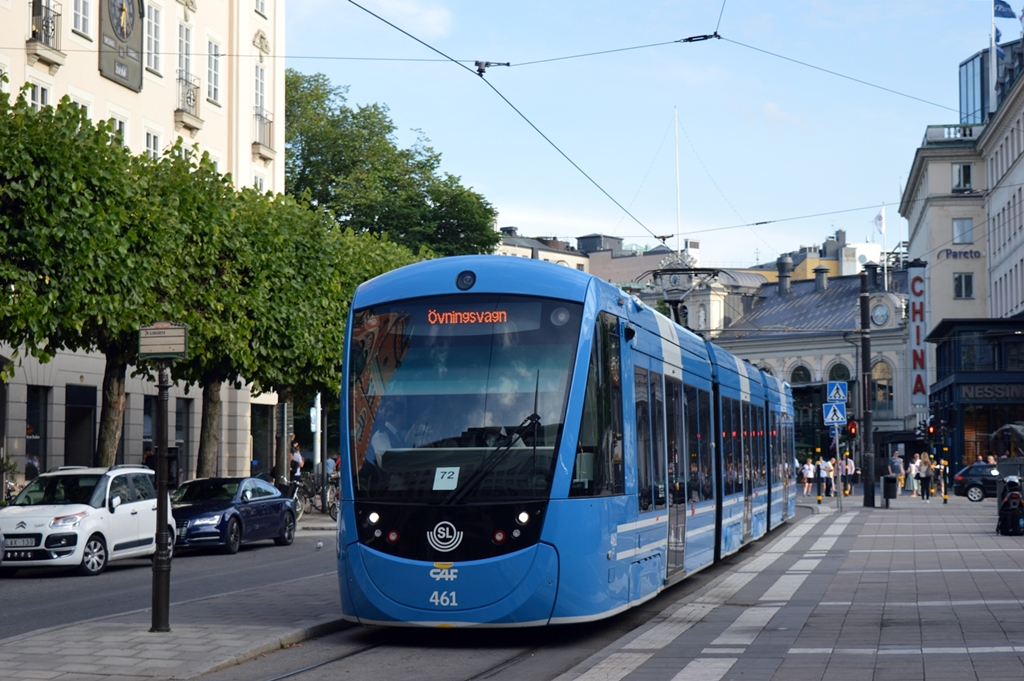 Stockholm, CAF Urbos AXL A35 WN 461 als Fahrschule bei der Haltestelle Norrmalmstorg, 29.06.2016