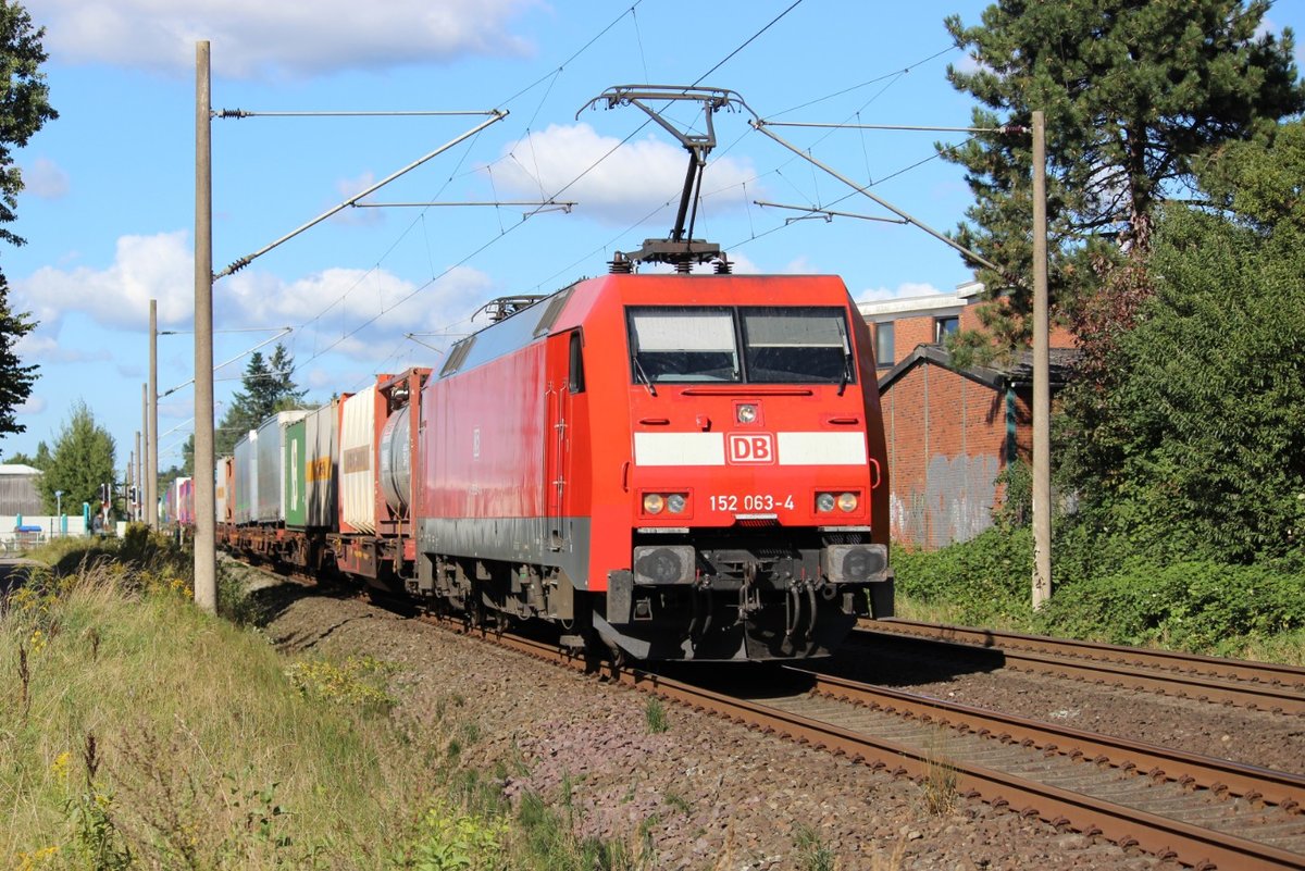 152 063-4 mit KLV-Zug aus Kiel am 05.09.2016 in Neumünster, in höhe BÜ Stoverweg.