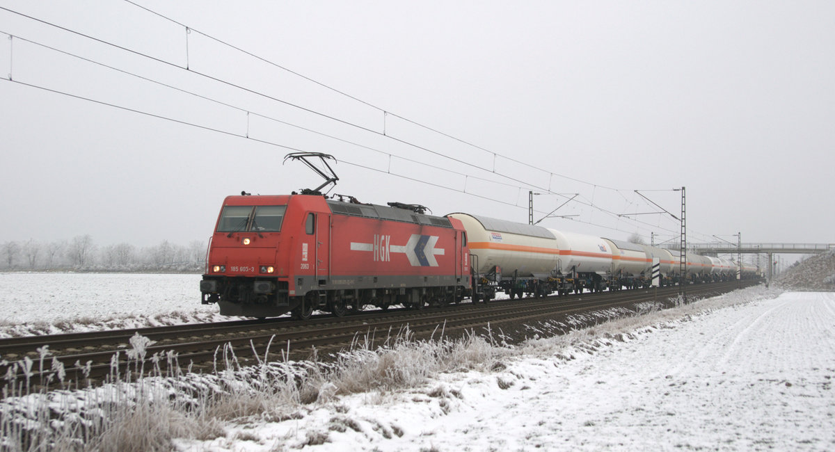 Alpha Trains Belgium 185 605, vermietet an RheinCargo (bis Aug. 2012 an HGK (2063)), mit Kesselwagen durch Marl (Niedersachsen) am 18.01.17 in Richtung Osnabrück.