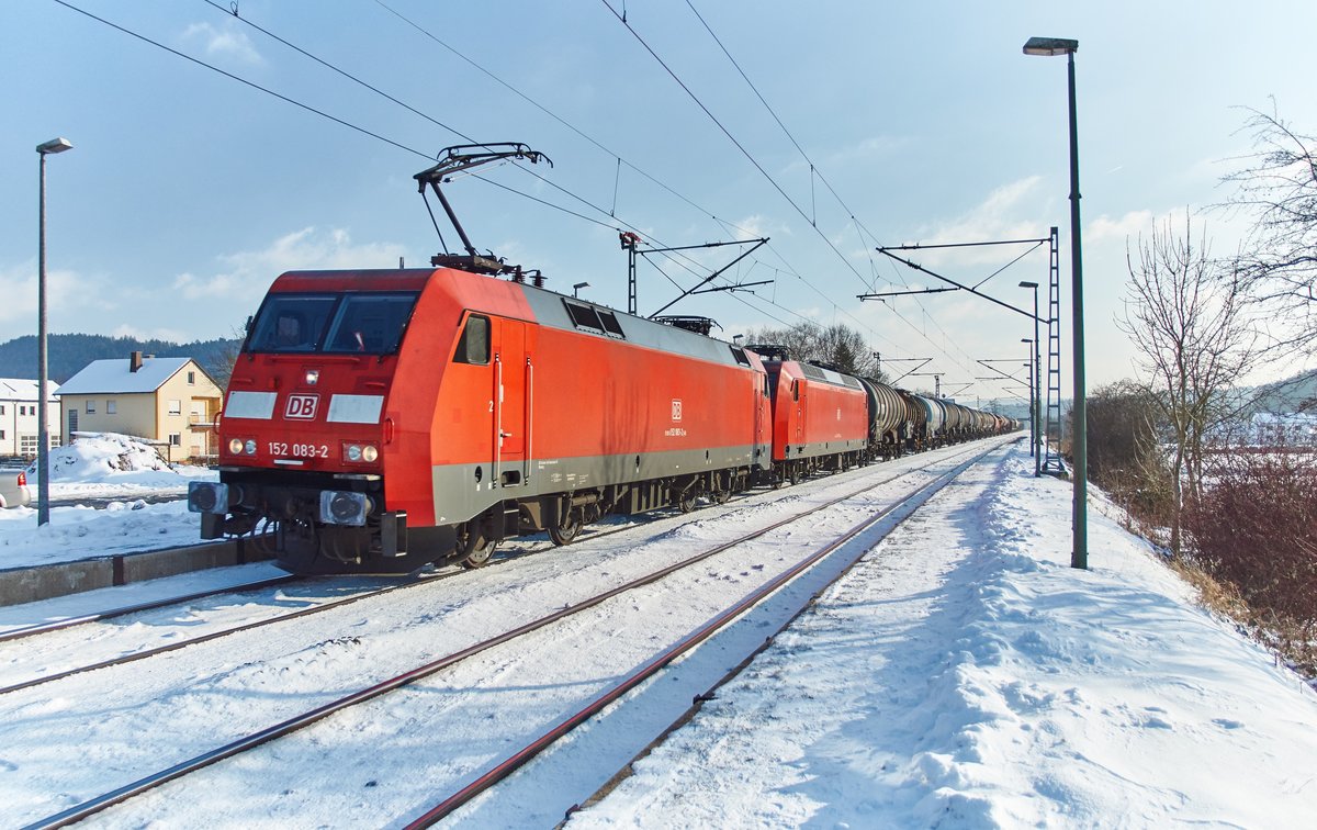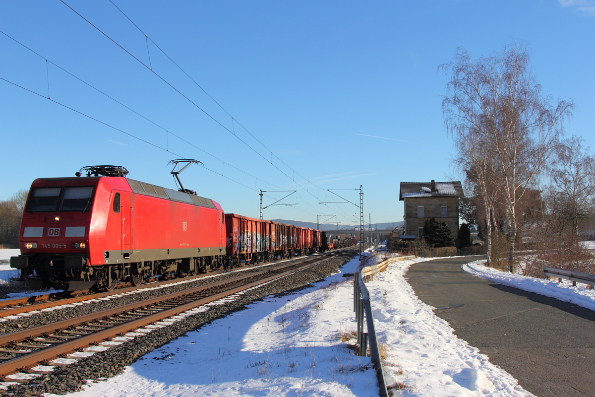 152 083-2 u. 145 055-0 passieren am 18.01.2017 mit einen Kesselzug den Ort Gundelsdorf.