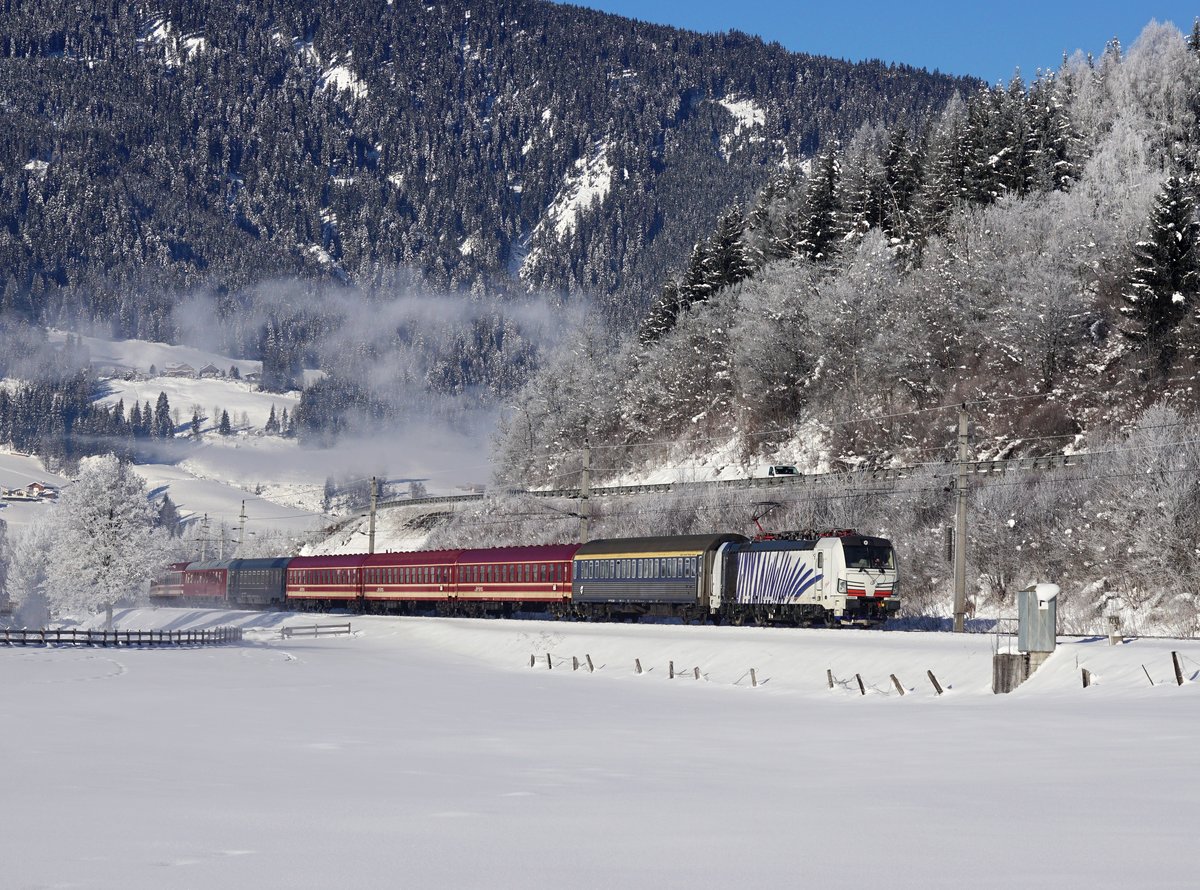 Die 193 772 mit einem Turnuszug nach Schladming am 21.01.2017 unterwegs bei Altenmarkt im Pongau.