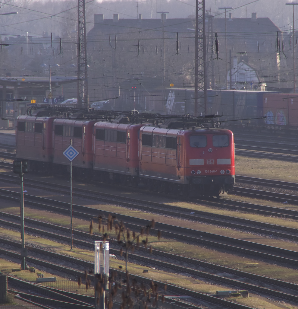 Lange Zeit war Sie aus dem Saarland verschwunden, die Baureihe 151. Plötzlich tauchen sie wieder vermehrt auf und so stehen gleich 4 Stück in der Dillinger Abstellung. In den letzten Monaten beförderten Loks der Baureihe 152 die Kokszüge zur Dillinger Zentralkokerei. 151 140-1 steht als erste Lok in der Reihe. 22.01.2017 Dillingen Saar