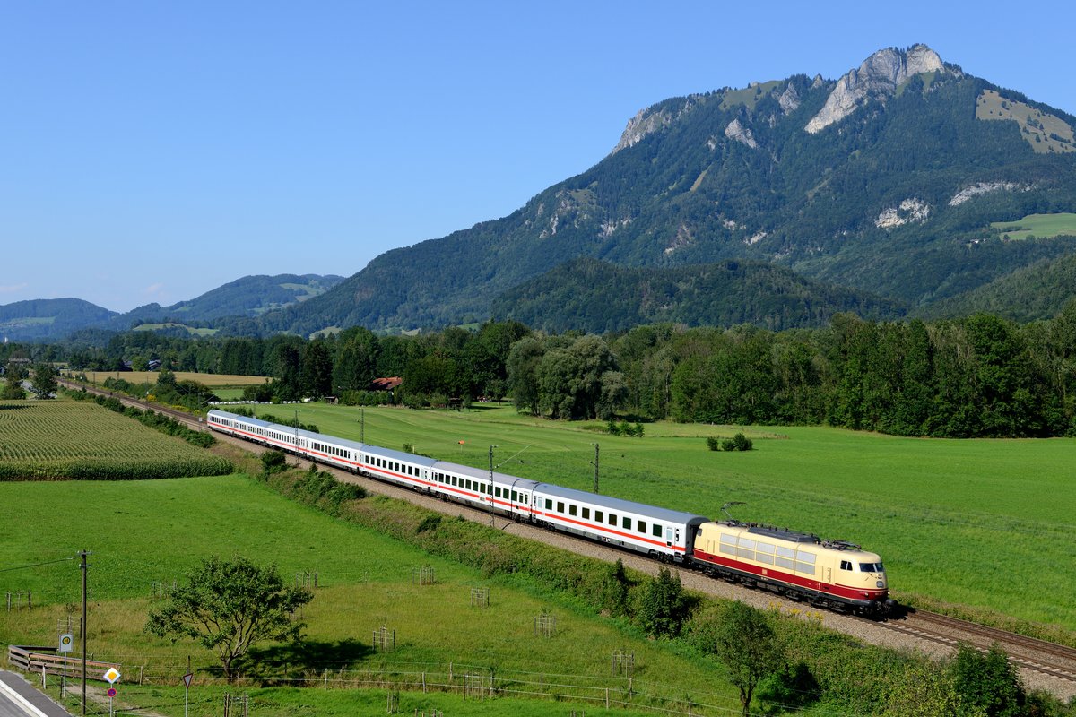 Langsam neigen sich die Sommerferien dem Ende entgegen und somit auch die Einsätze der 103 245 vor den saisonal nach Tirol verkehrenden InterCities. Am 22. August 2015 wurde die bekannte Fotostelle bei Kirnstein im Inntal aufgesucht und der IC 1281 auf seiner Fahrt nach Schwarzach-St. Veit abgelichtet. Die 103 bleibt bis Wörgl vor dem Zug und übernachtet dann in der dortigen Zugförderung.