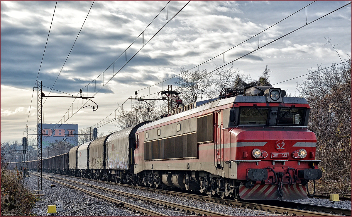 SŽ 363-033 zieht Güterzug durch Maribor-Tabor Richtung Norden. / 2.12.2016