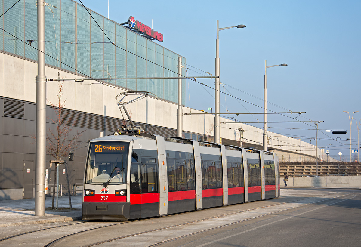 Wien ULF B1 737 als Linie 26, Hausfeldstrasse, 20.01.2017.