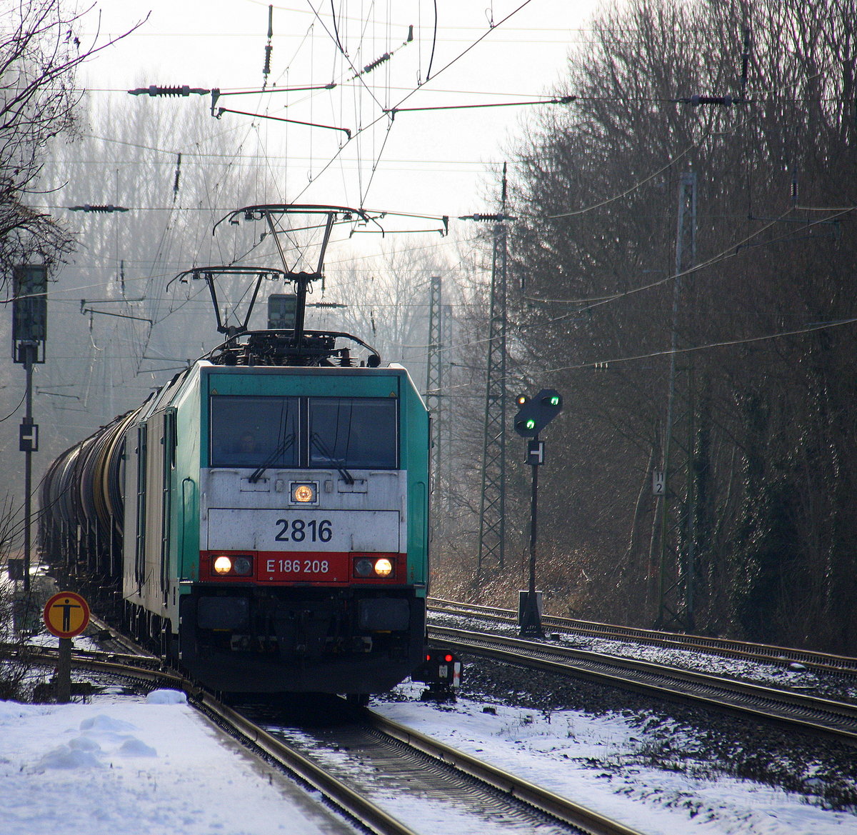 Zwei Cobra 2816 und 2815 kommen als Umleiter mit einem langen Kesselzug aus Antwerpen-Petrol(B) nach Basel-SBB(CH) und fahren durch Kohlscheid und fahren in Richtung Herzogenrath,Neuss. Aufgenommen von Bahnsteig 1 in Kohlscheid. Bei Sonnenschein am Kalten Mittag vom 14.1.2017.