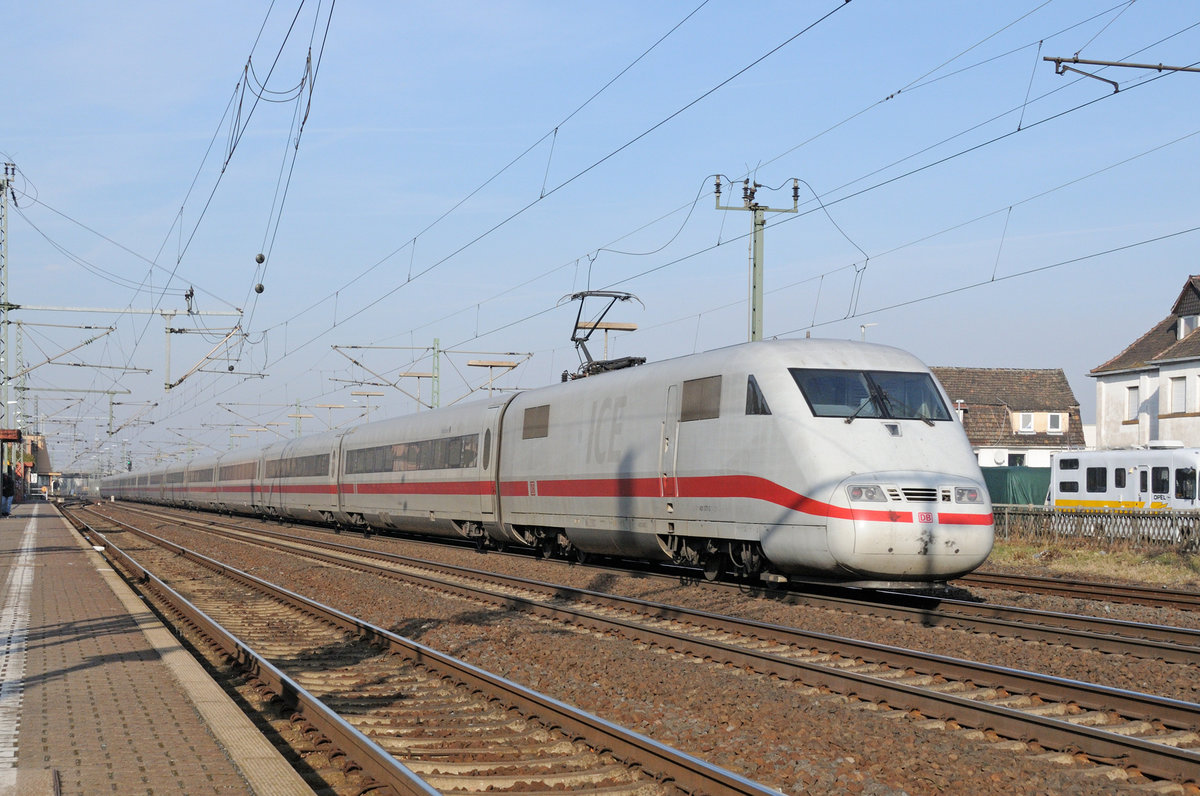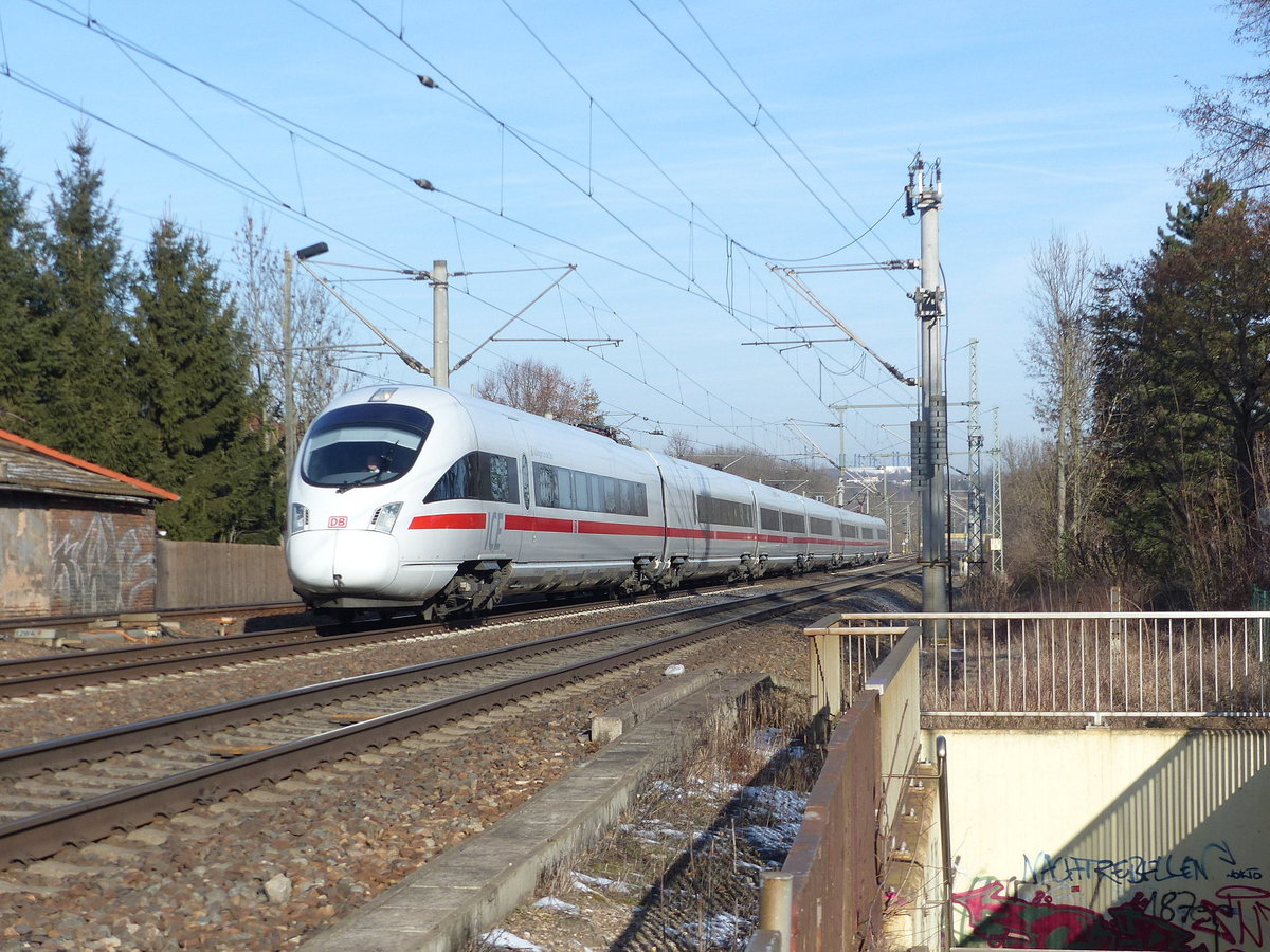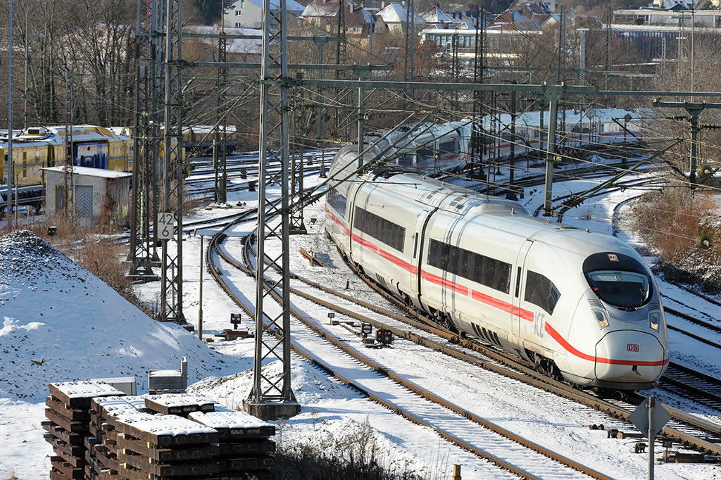 06.01.2017 ICE bei der Ausfahrt aus dem Göppinger Bahnhofsbereich in Richtung Ulm