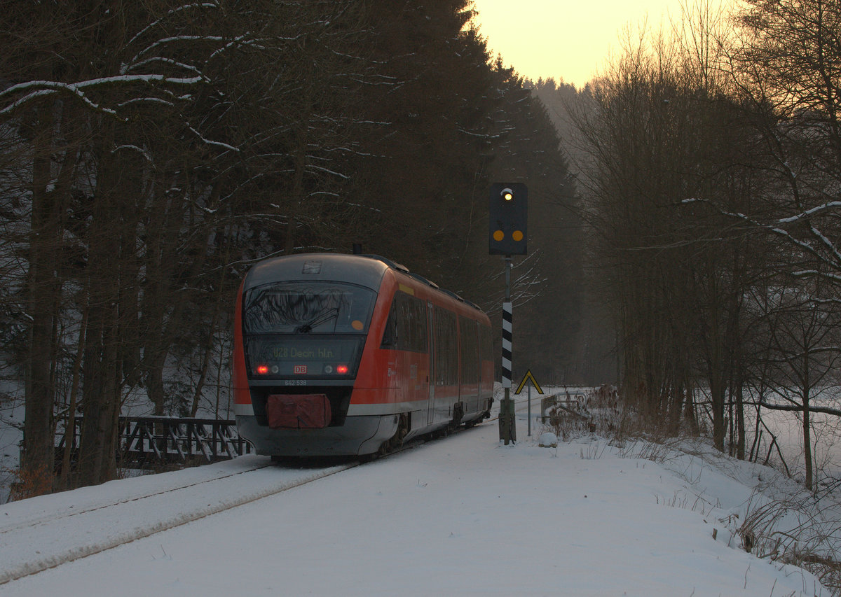 Der 628 670 als RB 37 fährt in Entenfang ein am Samstag den 28.1.2017