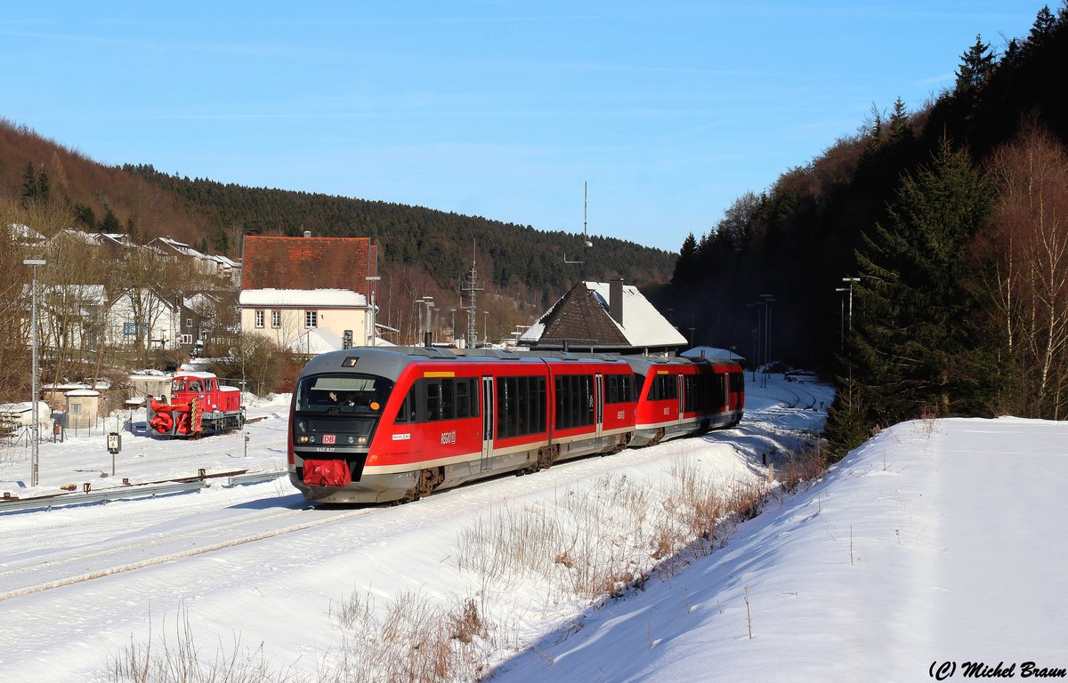 642 137/637+642 144/644 verlassen den Bahnhof Brilon Wald auf der Fahrt nach Willingen, aufgenommen am 28.01.17.