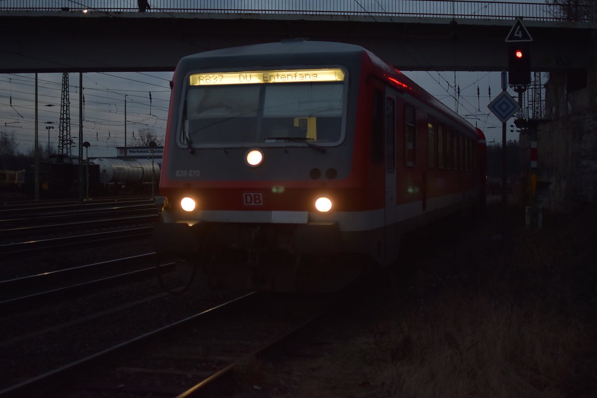 Auch am Abend des 28.1.2017 kommt der 628 670 wieder in Entenfang eingefahren.