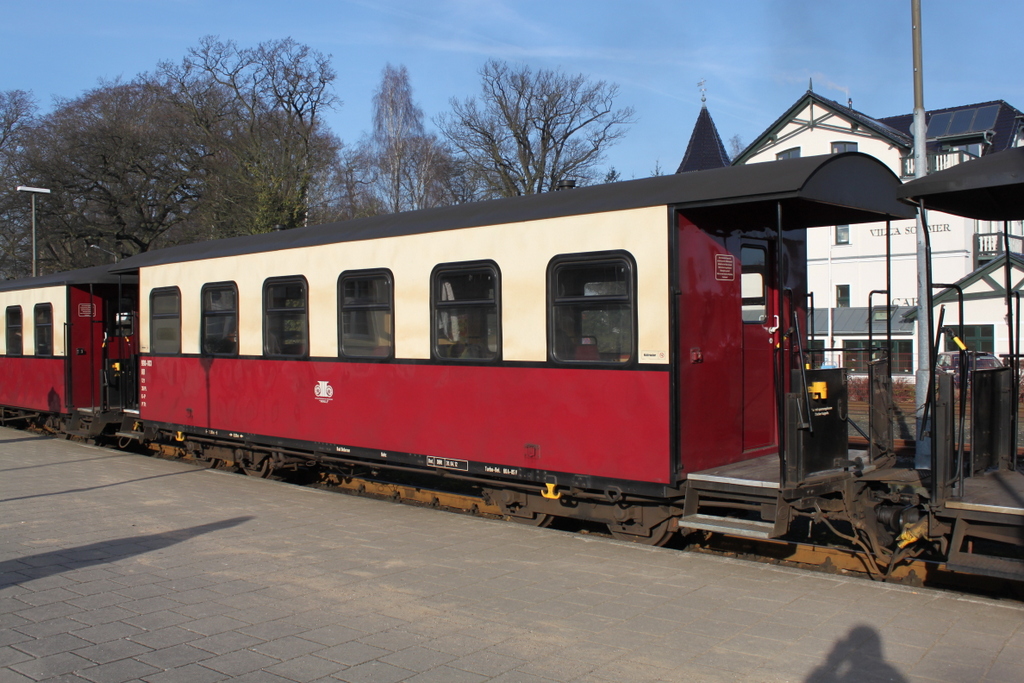 Denkmal am 18.3.1990 vor dem Bahnhof in Gommern: 994301 ex Burger Kleinbahn.