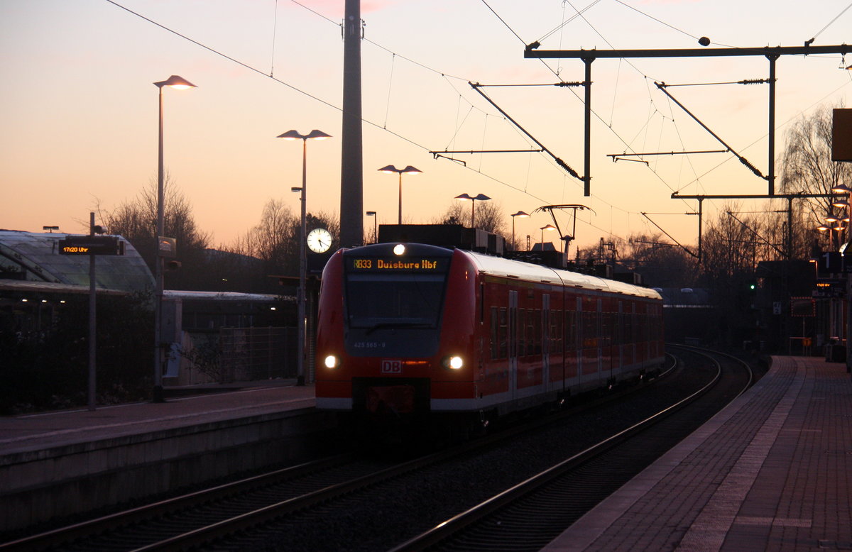 Die Rhein Niers Bahn RB33 aus Aachen-Hbf nach Duisburg-Hbf und kommt aus Richtung Aachen-Hbf,Aachen-Schanz,Aachen-West,Laurensberg,Richterich,Kohlscheid,Herzogenrath,Palenberg,Zweibrüggen,Frelenberg,Geilenkirchen,Süggerrath,Lindern,Brachelen,Hückelhoven-Baal,Baal und hält in Erkelenz und fährt dann weiter in Richtung Herrath,Beckrath,Wickrath,Rheydt-Hbf,Mönchengladbach-Hbf. Aufgenommen vom Bahnsteig 1 in Erkelenz. In der Abendstimmung am Kalten Abend vom 20.1.2017.