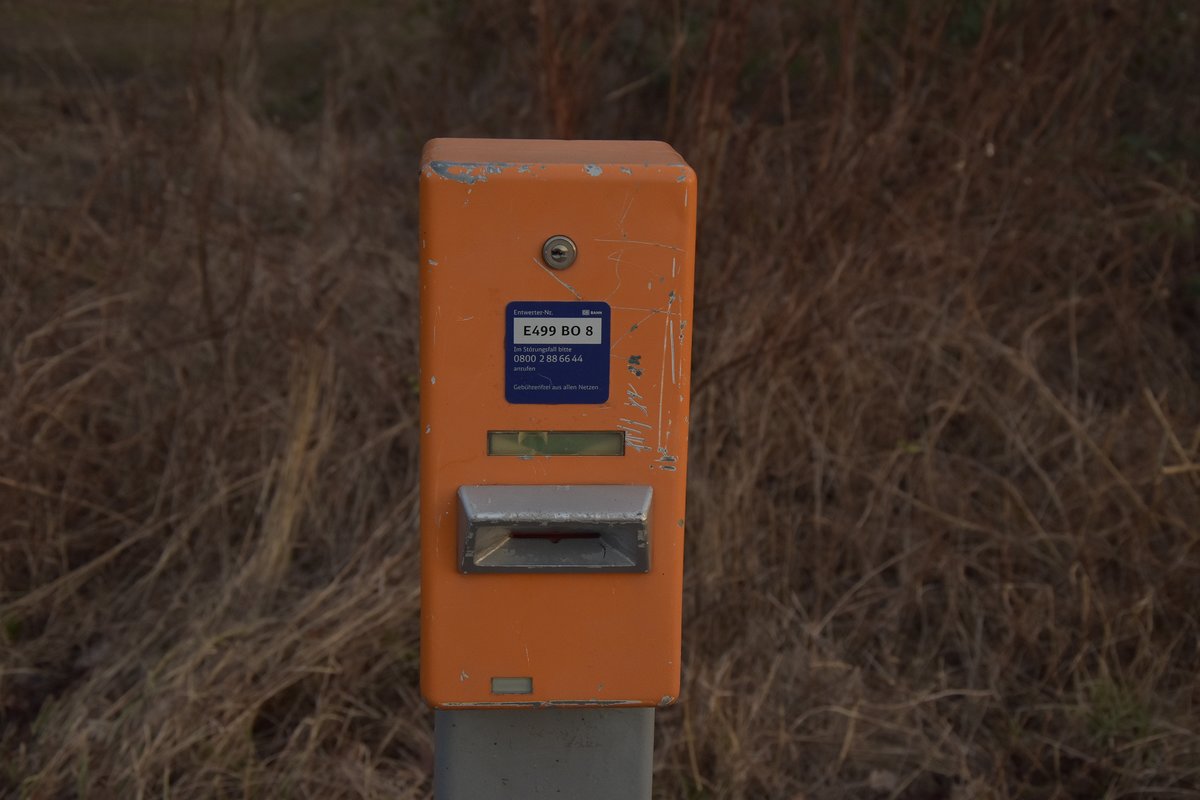 Fast im Nirvana! Dieser Fahrkartenentwerter steht am Haltepunkt Duisburg Entenfang, der Endstation der RB37. Sollte er einmal defekt sein, was eigentlich nicht sein darf, aber manchmal so ist, dann rufst Du die Notfallnummer und kündigst Deine Schwarzfahrt an. 28.1.2017