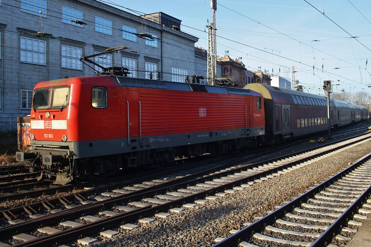 112 163 macht sich am 28.1.2017 mit dem RE7 (RE21062) nach Flensburg im Hamburger Hauptbahnhof auf den Weg.
