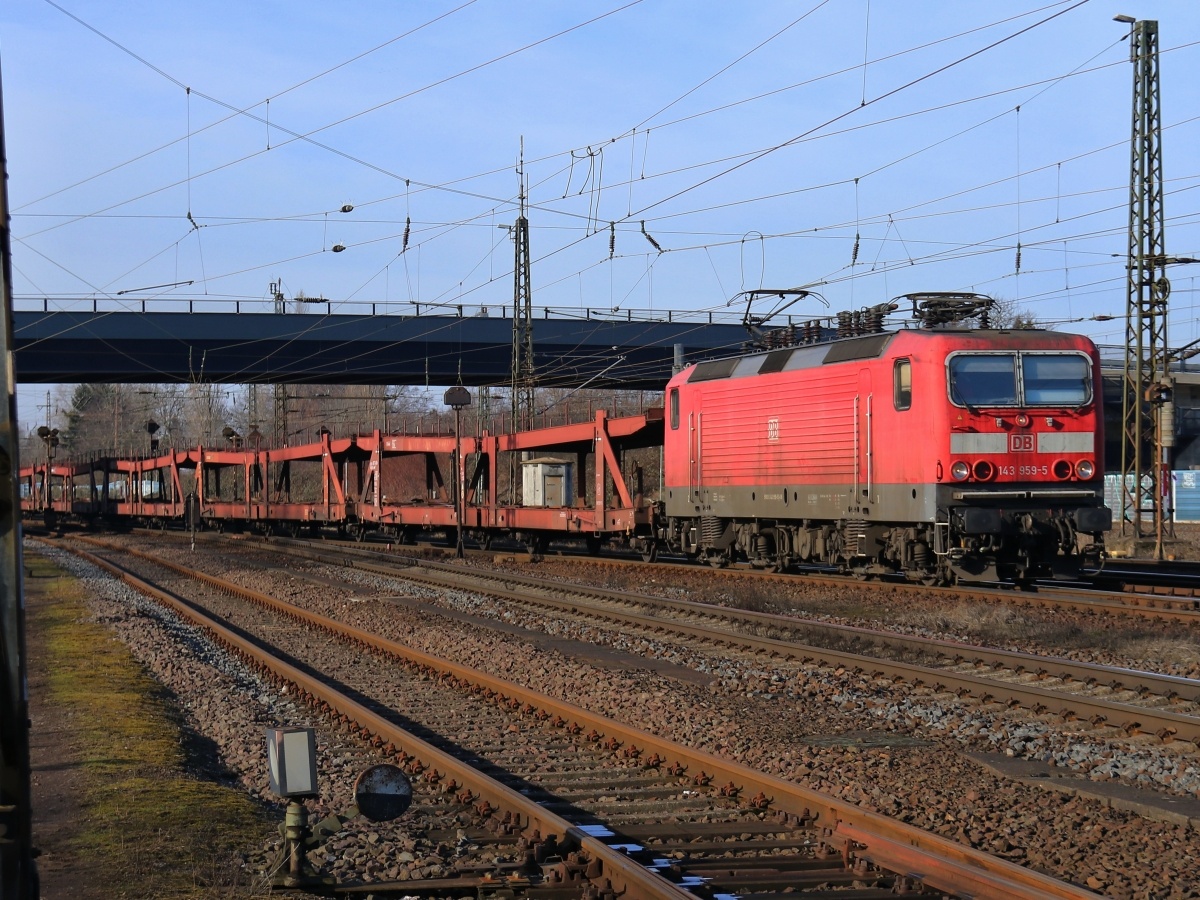 Db Lok 185 153-4 durchfährt den Badischen Bahnhof. Das abzweigende Gleis führt auf einen Parkplatz, von wo aus auch diese Aufnahme am 18.01.2017 entstand.