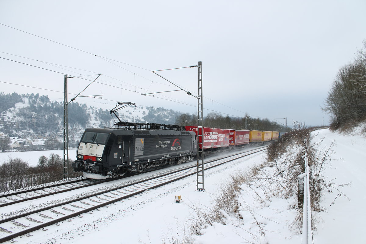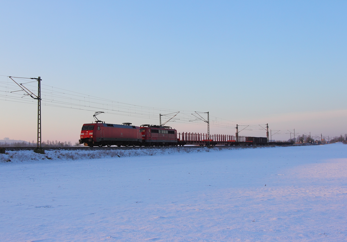 152 080-8 ist mit einen Walterzug in Richtung Saalfeld/Saale am 18.01.2014 bei Gundelsdorf unterwegs.