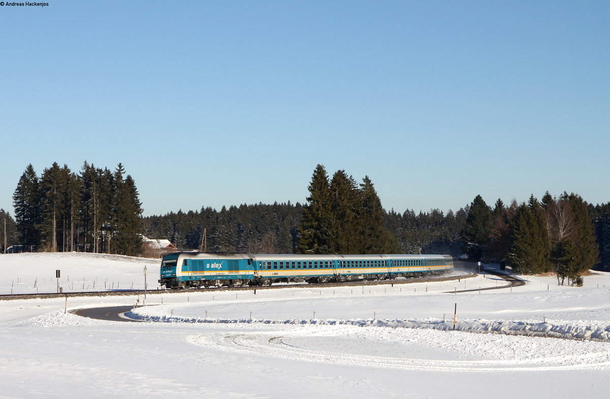 Die 101 055-2 der DB  Schauinsland Reisen  zieht den IC 2082  Königsee  am 28.01.17 bei Weisham in der Nähe von Prien am Chiemsee.