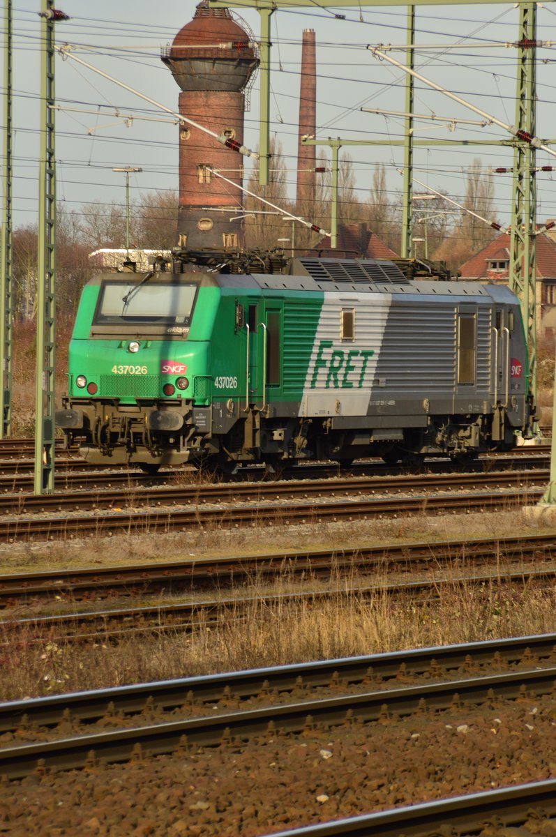 Re 482 022-1 durchfährt den Badischen Bahnhof. Das abzweigende Gleis führt auf einen Parkplatz, von wo aus auch diese Aufnahme am 18.01.2017 entstand.