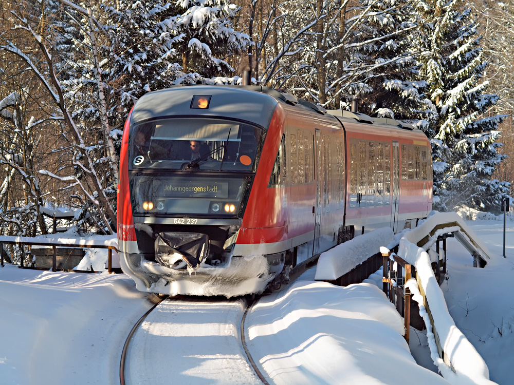 Baureihe 648 am 22.01.17 auf der Volmetalbahn bei Schalksmühle. Zehn Brücken sind an der Volmetalbahn zwischen Hagen und Lüdenscheid so marode, dass die Bahn sie in den nächsten zehn bis 15 Jahren abreißen will. Eine Sanierung ist aus Sicht der Bahn wirtschaftlich nicht sinnvoll.