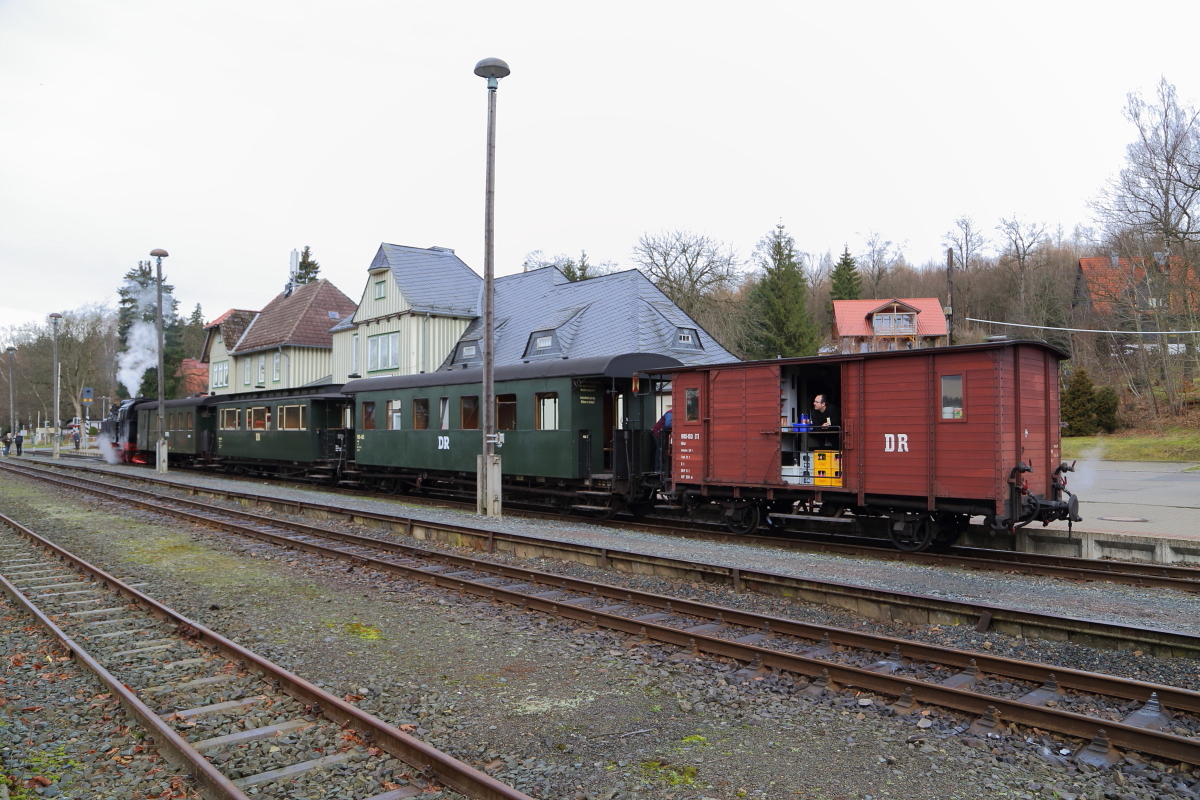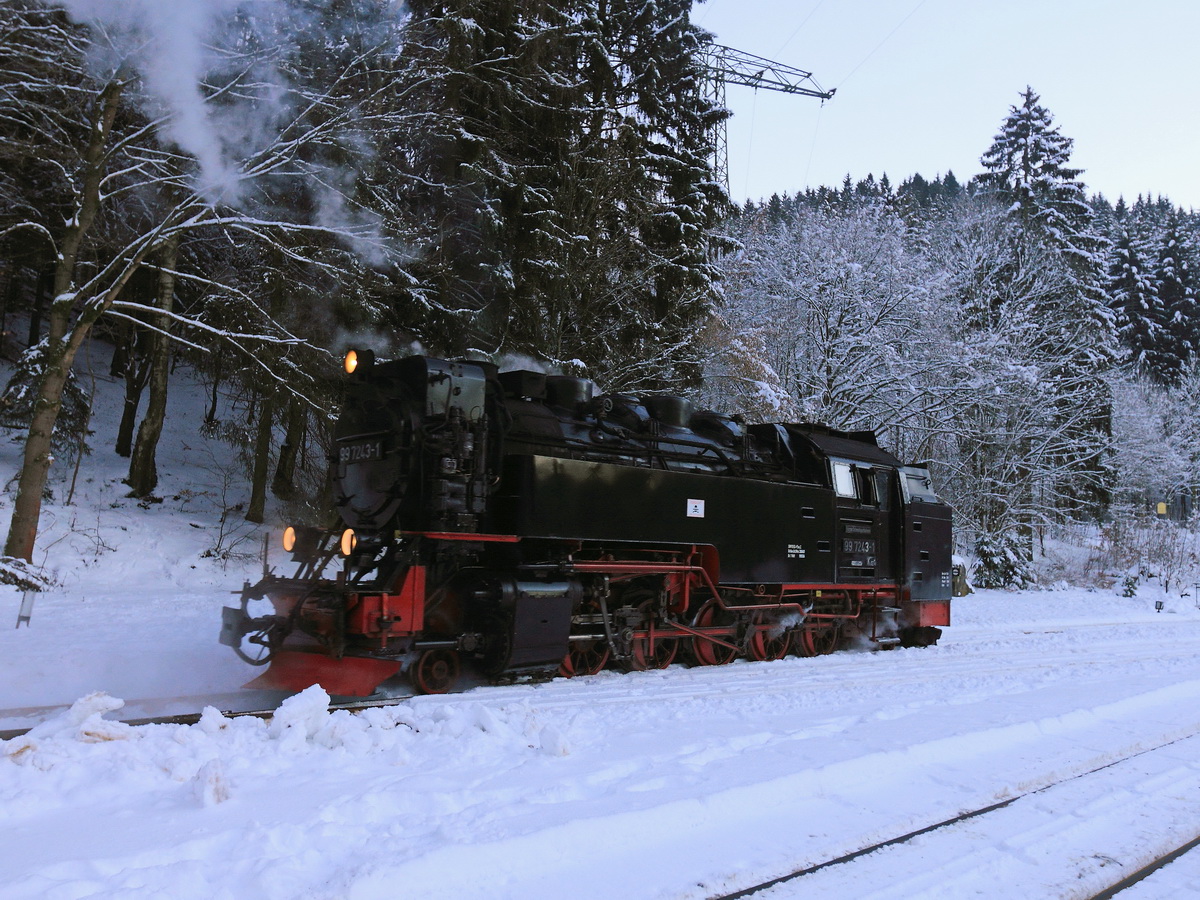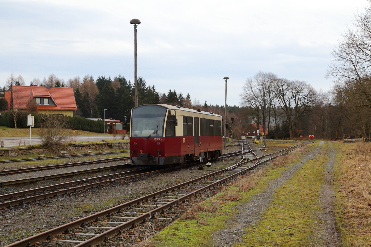Einfahrt 187 011-2 der HSB am 22. Januar 2017 in den Bahnhof Straßberg (Harz).