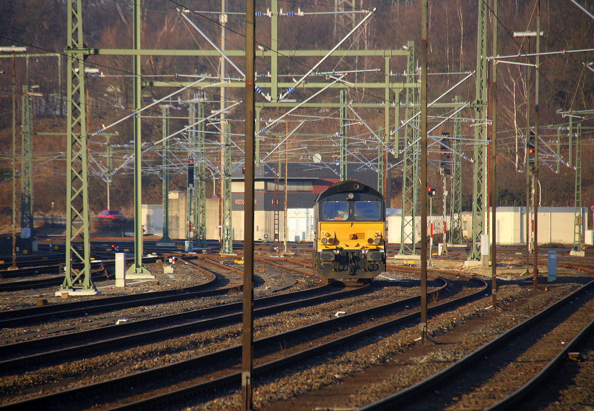 Die Class 66 steht in Herzogenrath. Aufgenommen vom Bahnsteig 2 in Herzogenrath. Bei Sonnenschein am Kalten Nachmittag vom 22.1.2017.