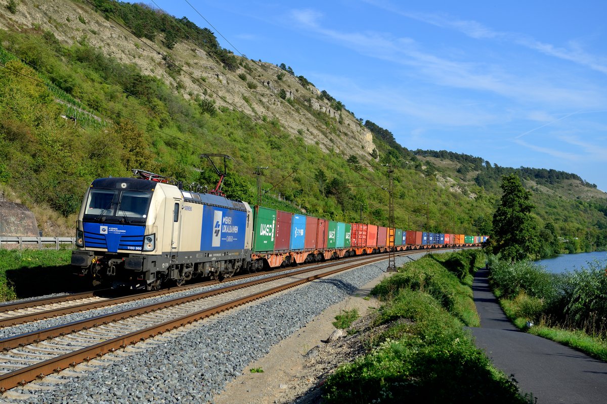 Eine Oberleitungsstörung bei Fürth ermöglichte dieses Bild: DGS 43950 von Enns nach Dradenau hatte dadurch einen längeren Zwangsaufenthalt in Nürnberg und nahm letztlich den Weg über Ansbach. Normalerweise kommt der Zug am frühen Nachmittag durchs Maintal gefahren, durch die entstandene Verspätung konnte ich den WLC Vectron 1193.980 im schönsten Abendlicht zwischen Karstadt und Gambach am Main aufnehmen (29. August 2015).