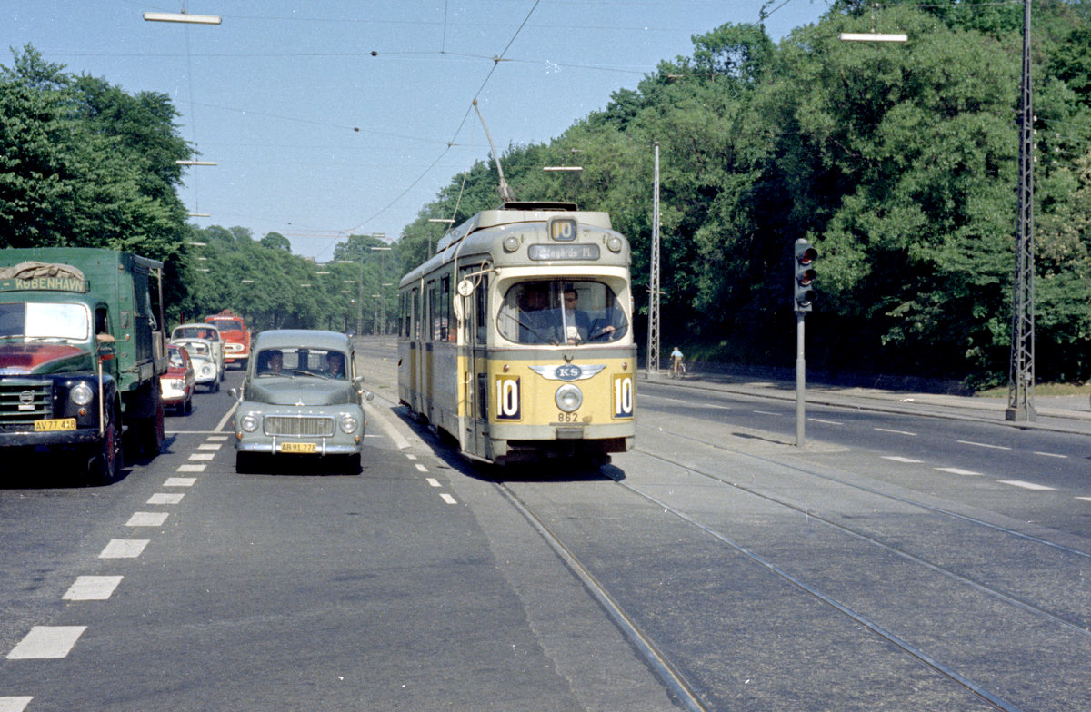 København / Kopenhagen Københavns Sporveje SL 10 (Tw 595) Valby, Vigerslev Allé / Sjælør Boulevard im Juni 1968. - Scan von einem Farbnegativ. Film: Kodacolor X.