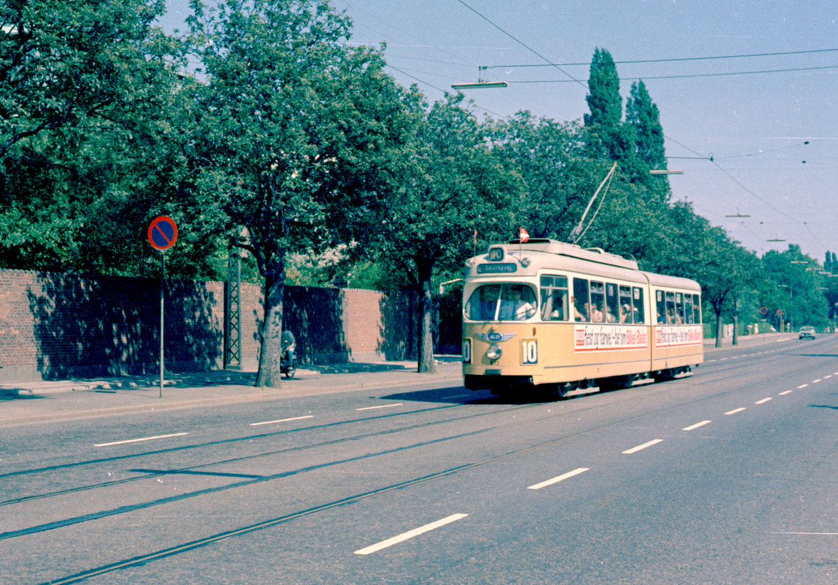 København / Kopenhagen SL 10 (DÜWAG-GT6 856) Emdrup, København NV, Frederiksborgvej im Juni 1968. - Scan von einem Farbnegativ. Film: Kodacolor X.