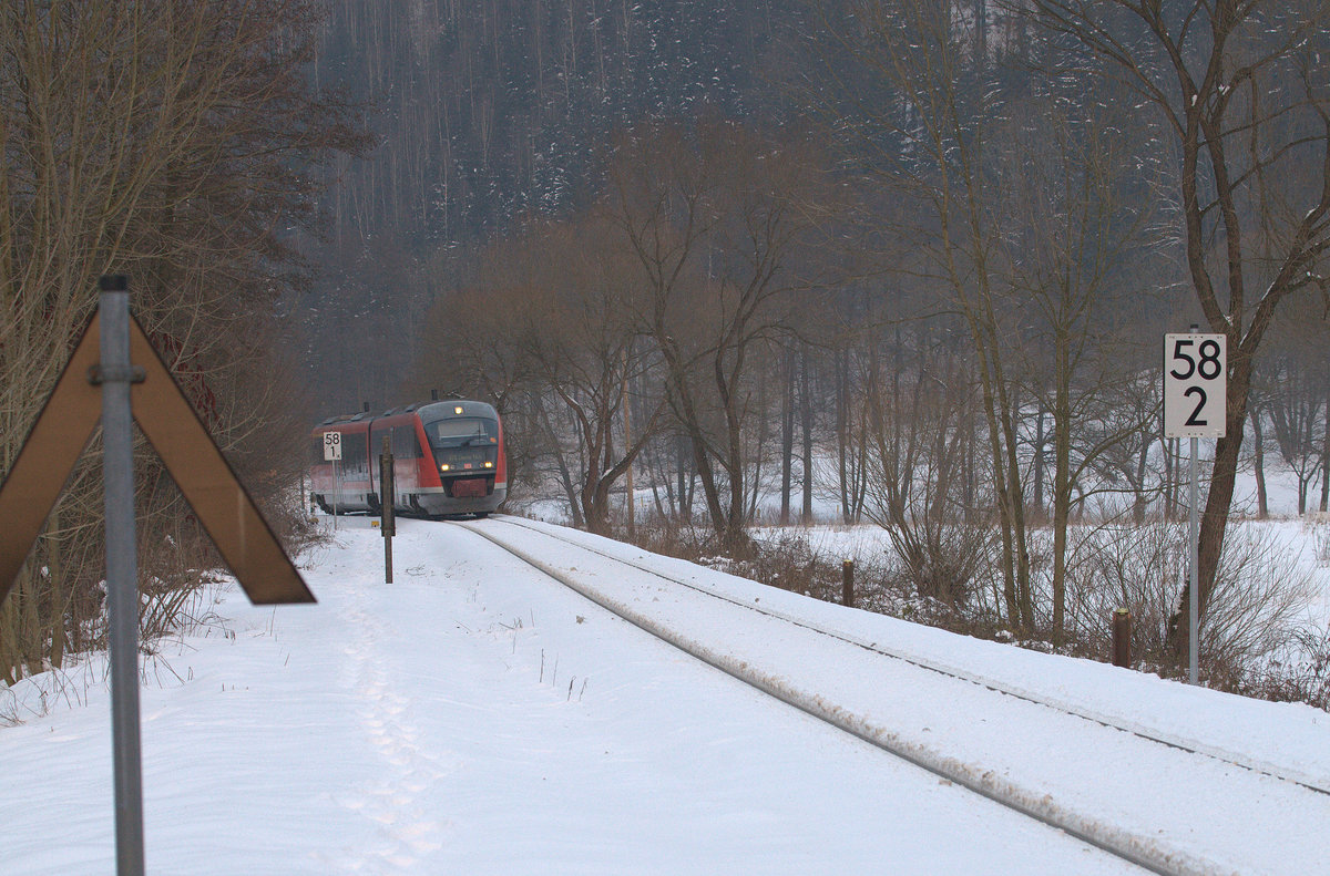 Baureihe 648 am 22.01.17 auf der Volmetalbahn bei Schalksmühle.
