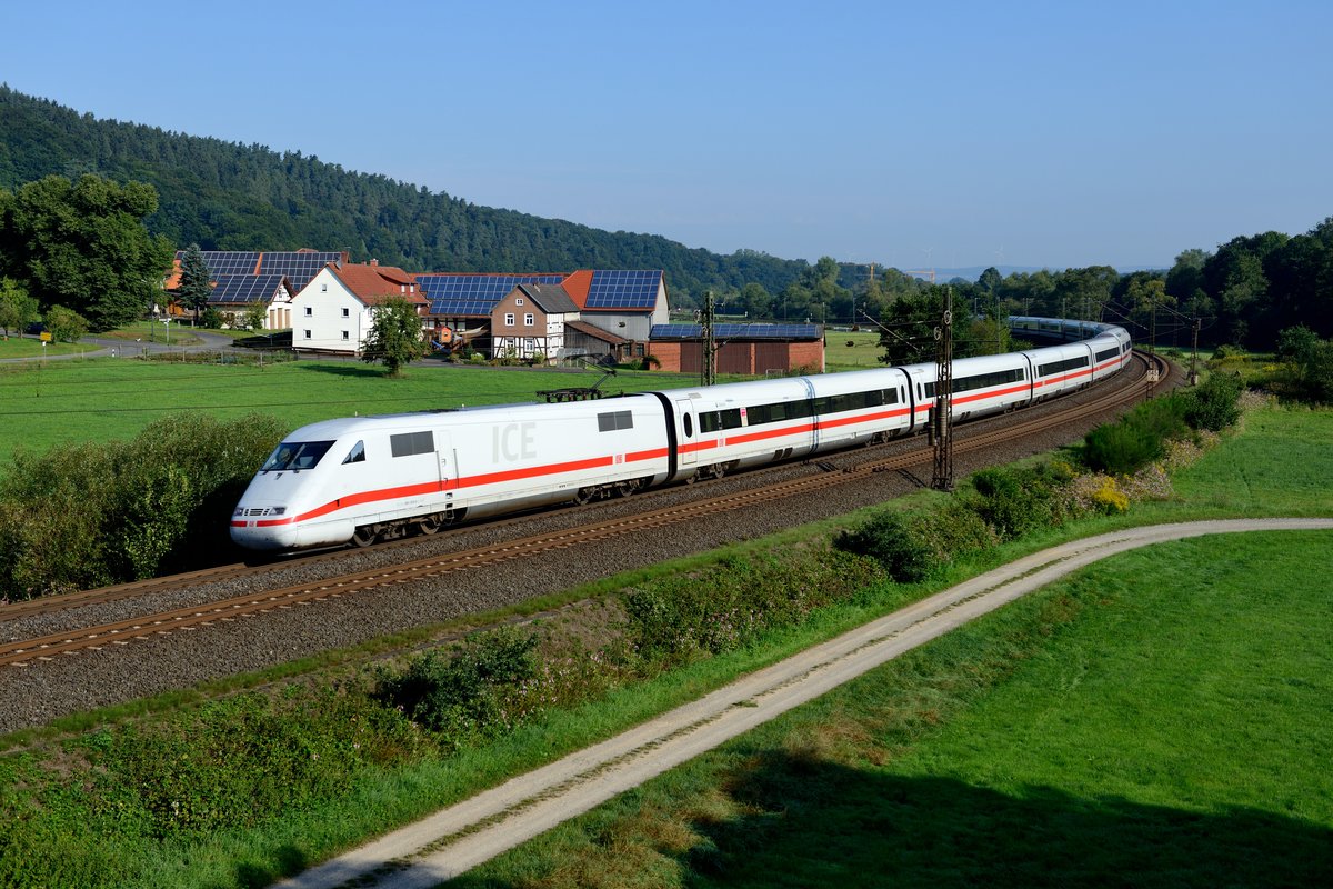 Nur Sonntags verkehrt ICE 297 von Berlin Gesundbrunnen nach Interlaken Ost. Der saubere 401 574 war mir ein Bild wert, bei Hermannspiegel an der Nord-Süd-Strecke legte sich der Triebzug am 30. August 2015 fotogen in die Kurve.