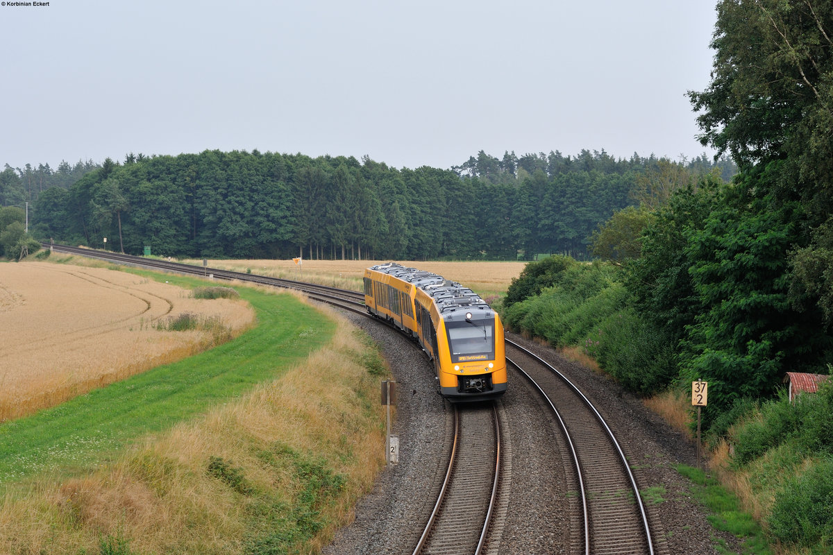 218 466-1 mit einem 628er im Schlepptau auf der Überführungsfahrt von Hof nach Mühldorf bei Oberteich, 26.07.2016