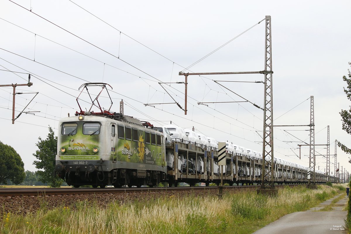 Am 01.08.2015 befand sich die 140 184-3 noch nicht lange im Besitz der ELV. Heut sieht sie schmucker aus. Hier ist sie mit einem Spitzke-Bauzug in Fahrtrichtung Süden unterwegs. Aufgenommen zwischen Friedland(HAN) und Eichenberg.