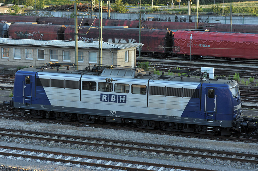 Blick vom Fußgängerweg der Olgastraße auf die am 27.06.2017 in Friedrichshafen abgestellte 245 037.