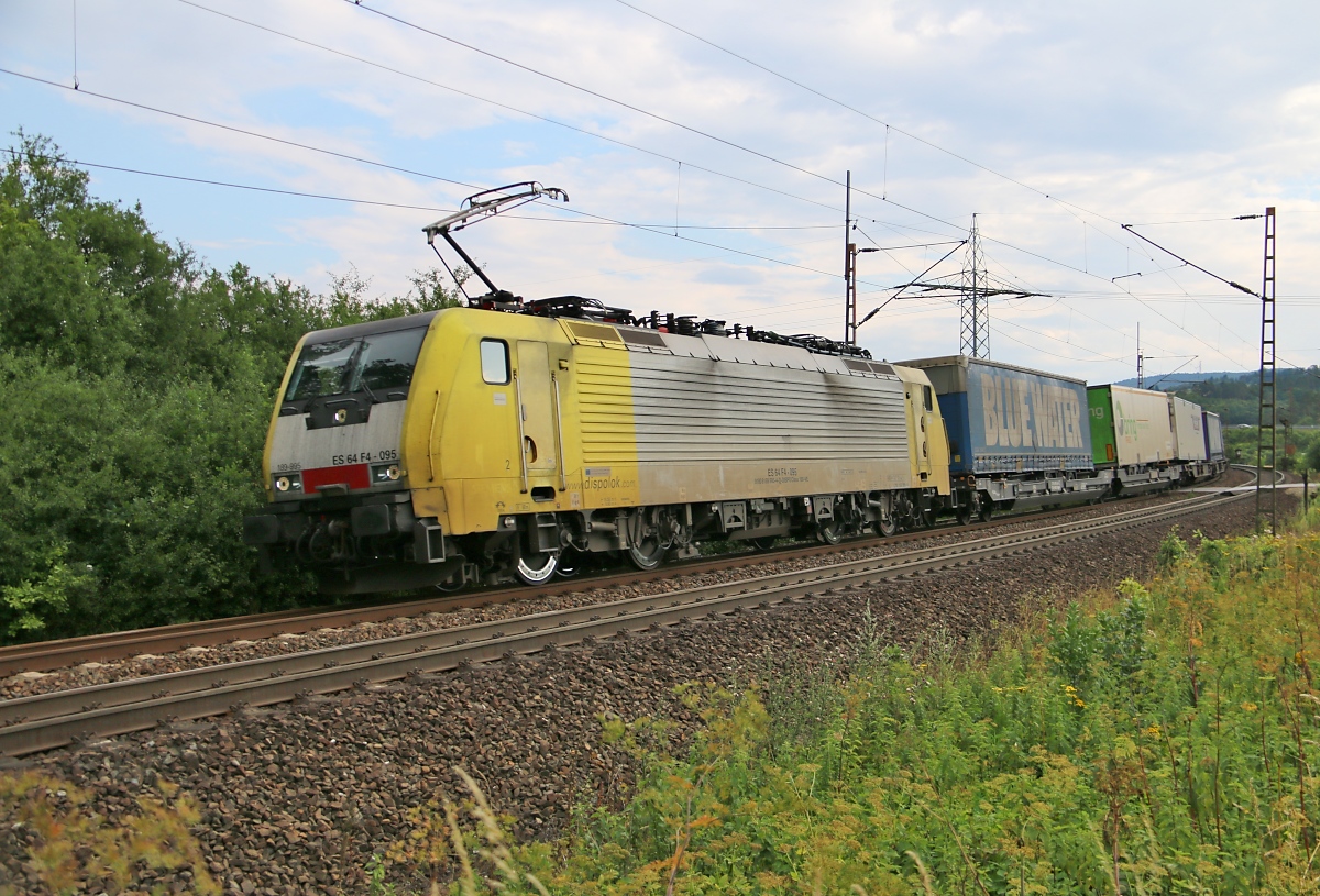 189 995 (ES 64 F4-095) mit KLV-Zug in Fahrtrichtung Norden. Aufgenommen zwischen Eichenberg und Friedland(HAN) am 30.07.2015.