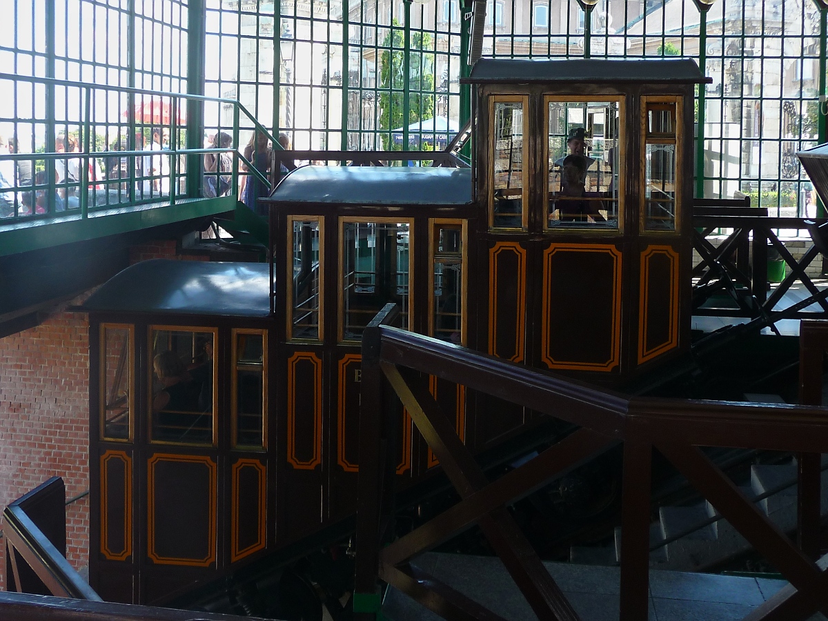 Blick in die Bergstation der Budapester Standseilbahn zum Burgberg, 7.8.16