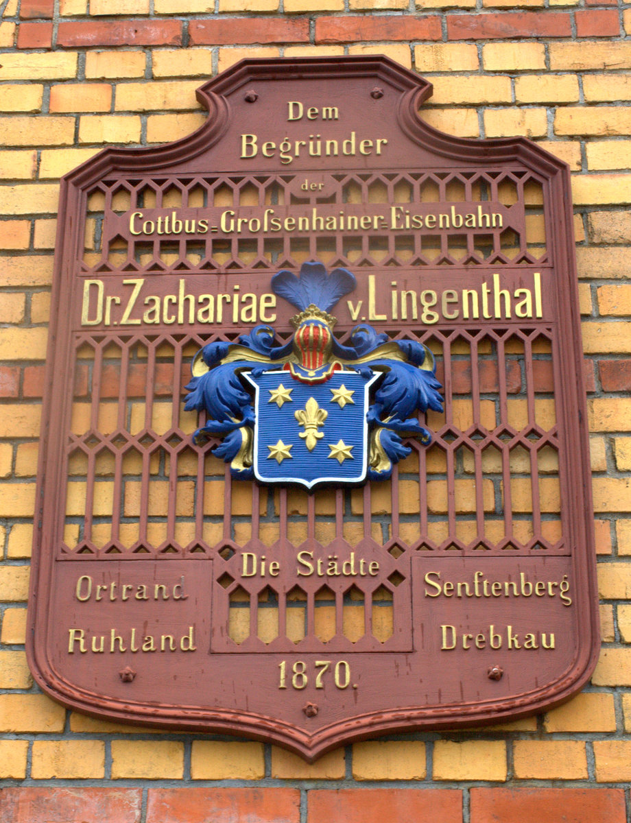 Ein Wappen erinnert an Dr. Zachariea von Lingenthal, der maßgeblich am Zustandekommen der Strecke Dresden-Ruhland-Senftenberg-Cottbus beteilig war.01.07.2017 12:56 Uhr.