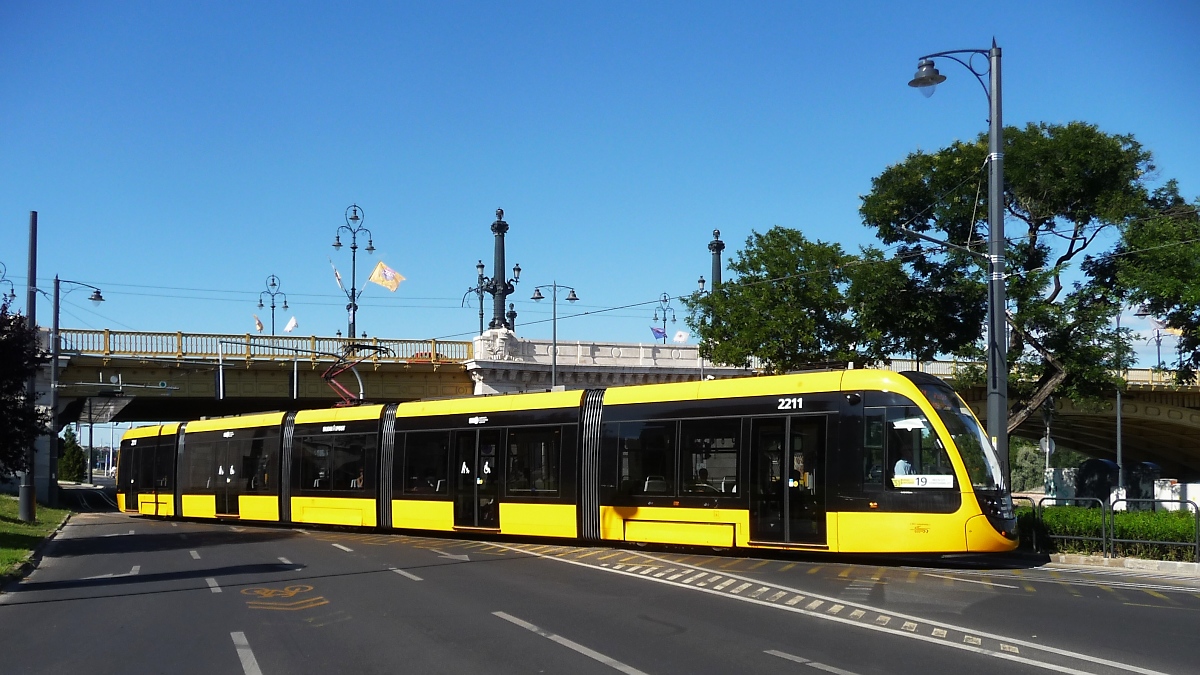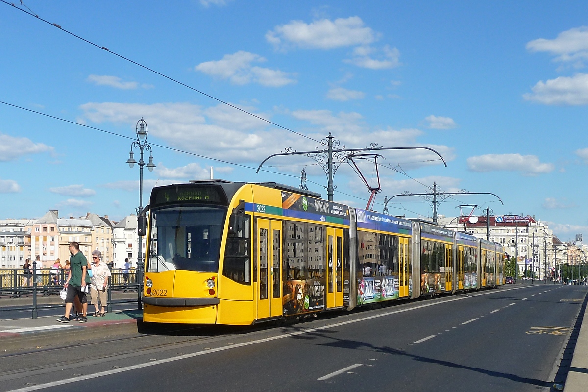 Straßenbahn der Linie 4 auf der Margit-Brücke, Budapest, 7.8.16
