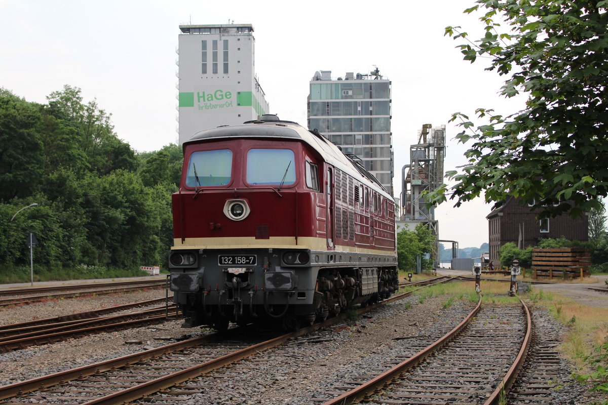"132 158-7" (232 158-7) der LEG in Kiel am Nordhafen (AKNH), vorgesehen für den "ÖLer", der von einer Planleistung zur Sonderleistung rationiert wurde und letztendlich ende 2016 eingestellt wurde, da die Rapsölraffinerie ihre Produktionsschritte verfeinert haben.