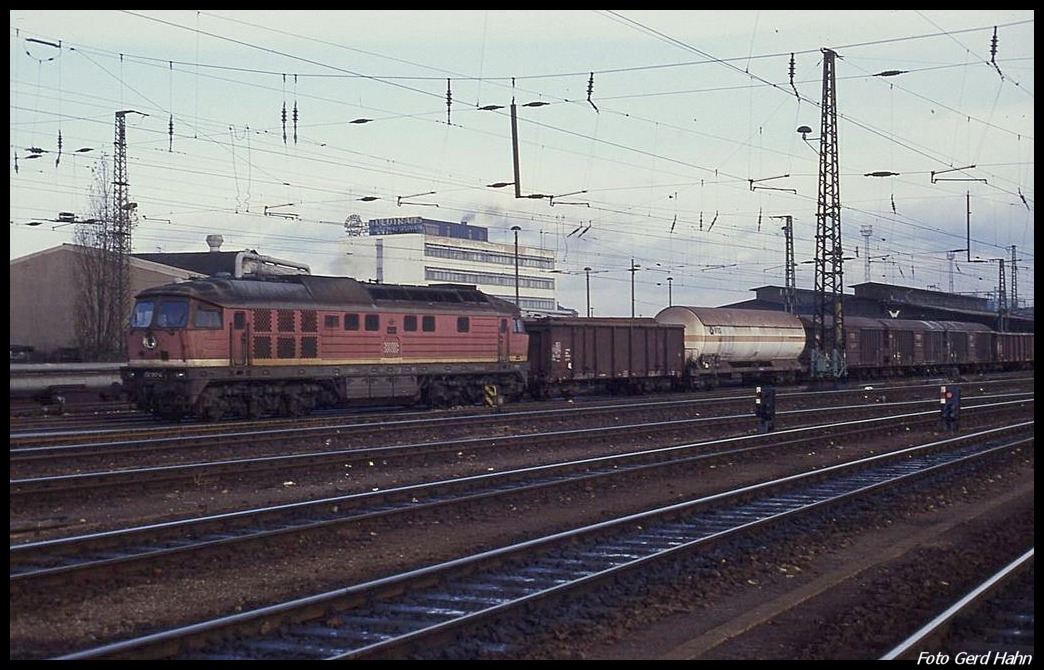 132353 fährt hier am 21.11.1990 mit einem Güterzug in Richtung Westen durch den HBF Erfurt.