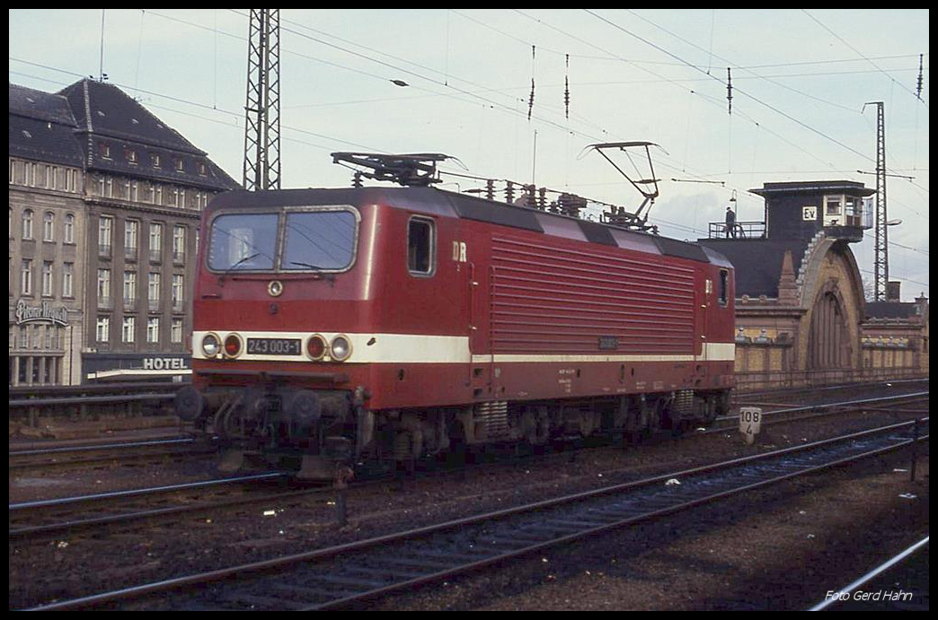143003 fährt hier solo am 21.11.1990 durch den HBF Erfurt.