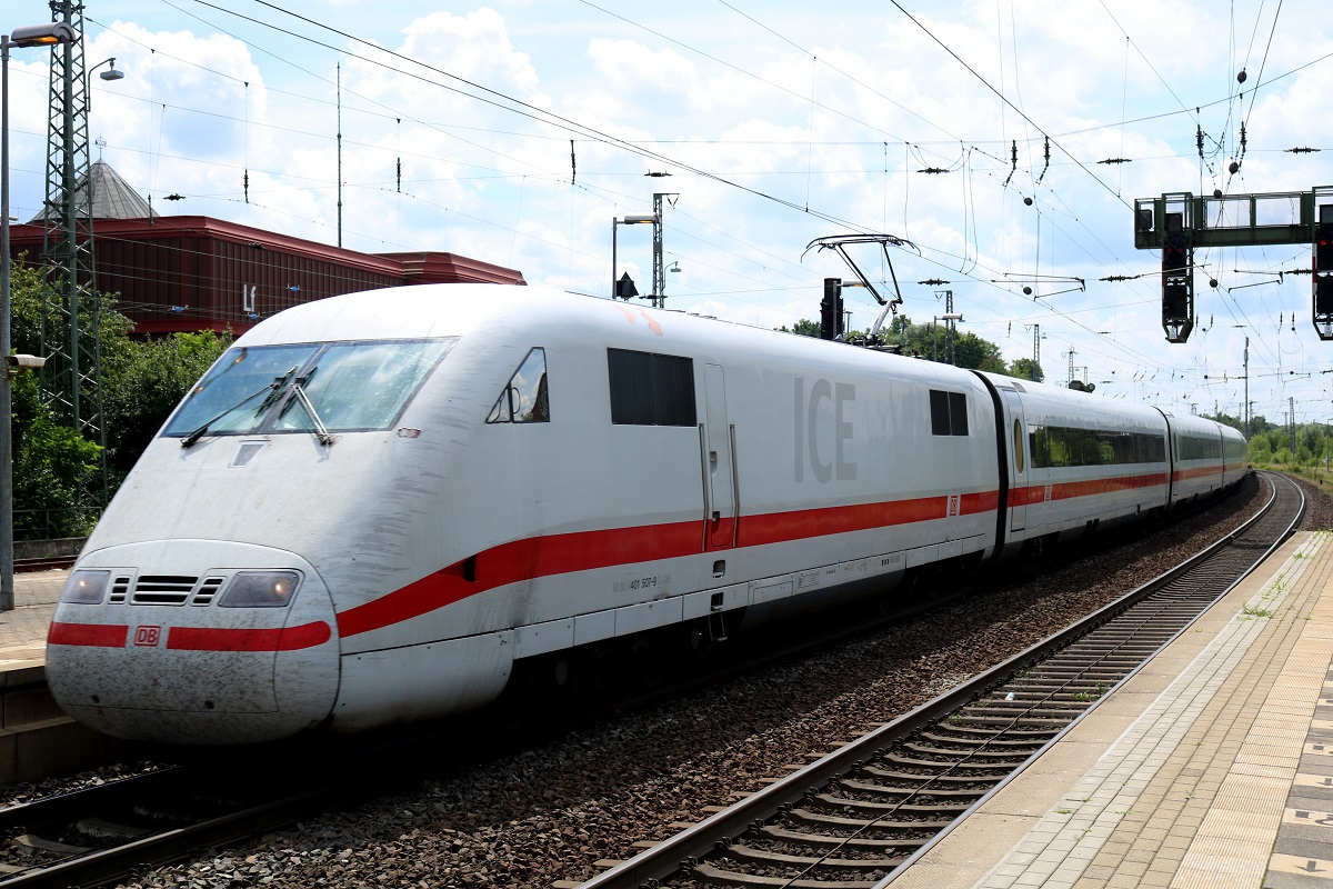 401 507-9 (Tz 107 "Plattling") als ICE 972 (Linie 22) von Stuttgart Hbf nach Kiel Hbf bei der Durchfahrt im Bahnhof Lüneburg auf der Bahnstrecke Hannover–Hamburg (KBS 110). [6.7.2017 - 12:11 Uhr]