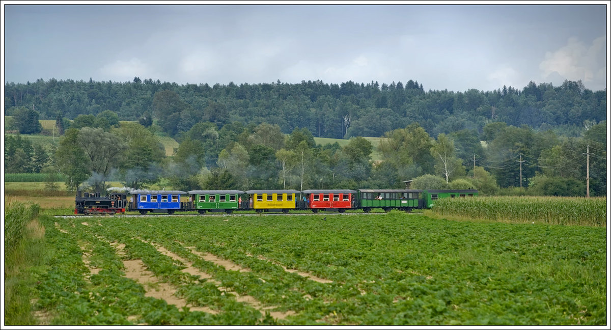 764.411R mit dem Stainzer Flascherlzug am 9.7.2017 zwischen Kraubath und Neudorf/Stainztal aufgenommen. Durch die enorme Masse an Maisfeldern im heurigen Jahr ist dies eine der wenigen Stellen, wo man den Zug von der Seite aufnehmen kann. Nett wird diese Stelle dann im Herbst, wenn die Kürbise reif sind.