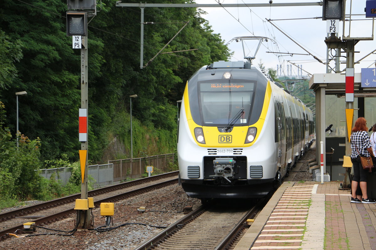 Dieser hier am heutigen Montagnachmittag um 17:23 Uhr von Rheydt Hbf aus weiter gen Mönchengladbach Hbf. Der Zug kommt gerade aus dem eingleisigen Odenkirchener Abzweig in Gleis 2 eingefahren. 10.7.2017