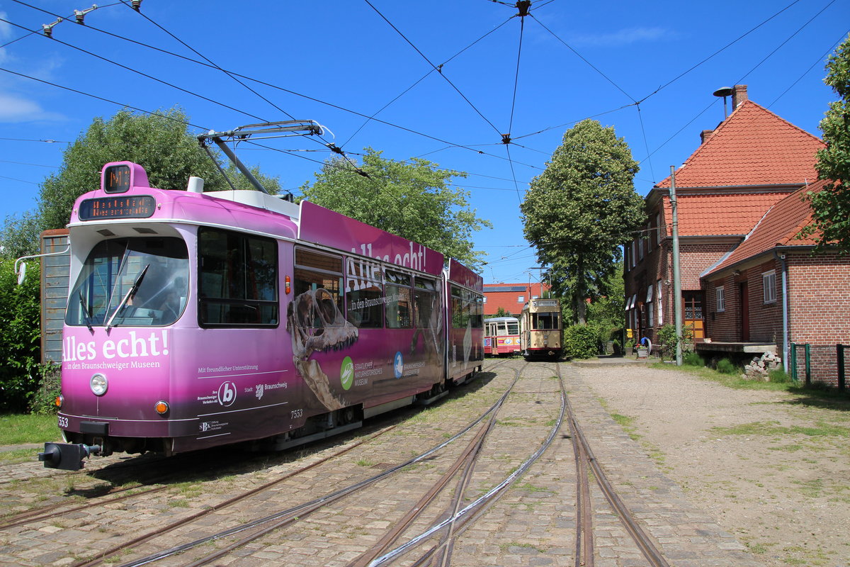 Der Wagen 7553 der Braunschweiger Verkehrsbetriebe "Alles Echt" hat seit Ostern 2016 seine neue Heimat in Schönberg gefunden, genauer gesagt beim Verein "VVM" Museumsbahnhof Schönberger Strand.