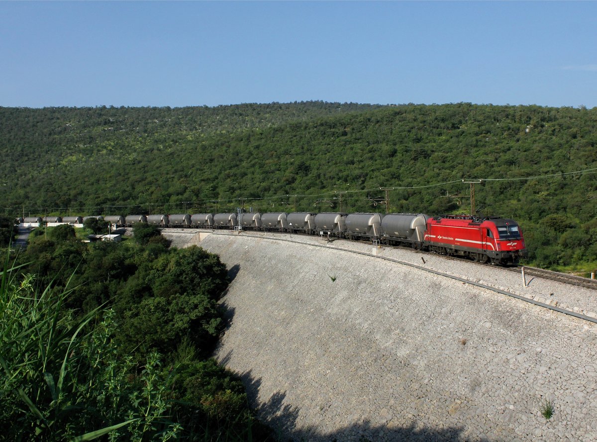 Die 541 014 mit einem Silozug am 25.06.2016 unterwegs bei Hrastovlje.