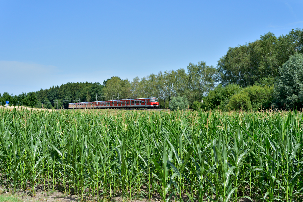 Zur Zeit verkehren an Wochenenden auch Triebzüge der BR 420 auf der S2 Erding - München - Petershausen/Altomünster. So konnte ein derartiges Doppelgespann, geführt von 420 470-7, am Sonntag, dem 09.07.17, in Poing verewigt werden.