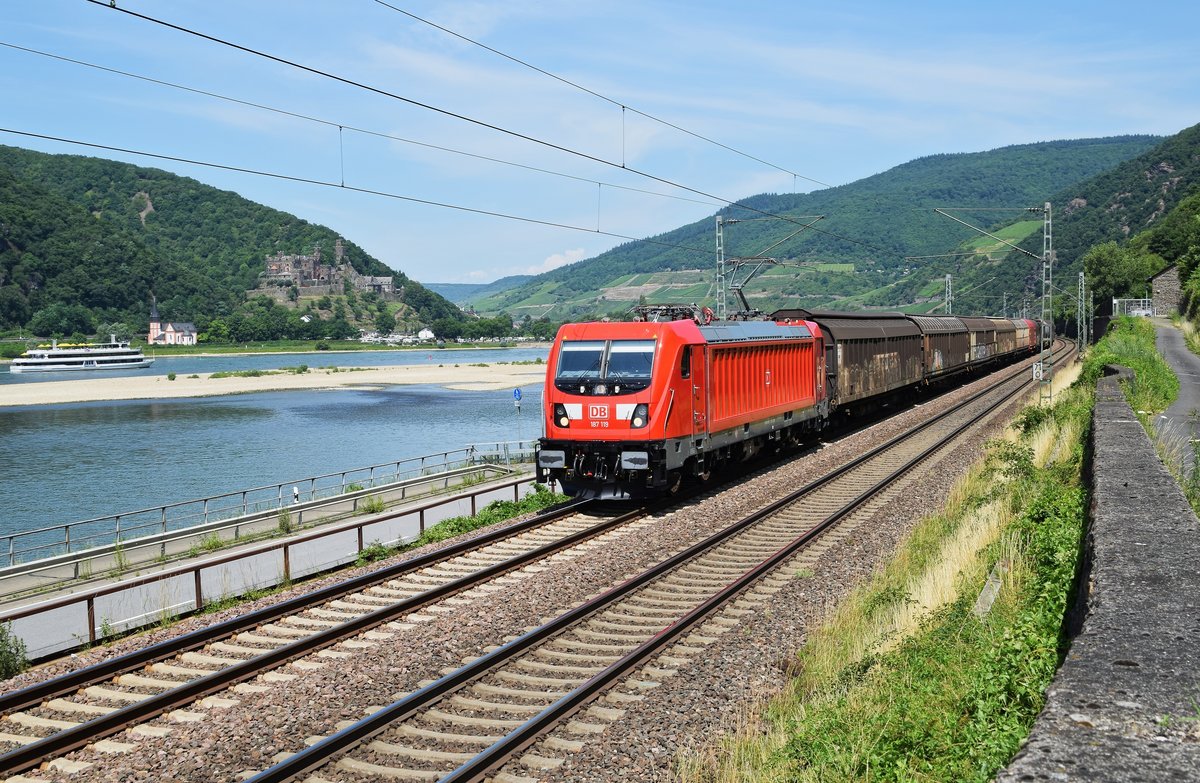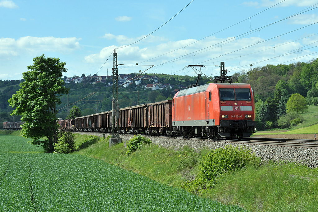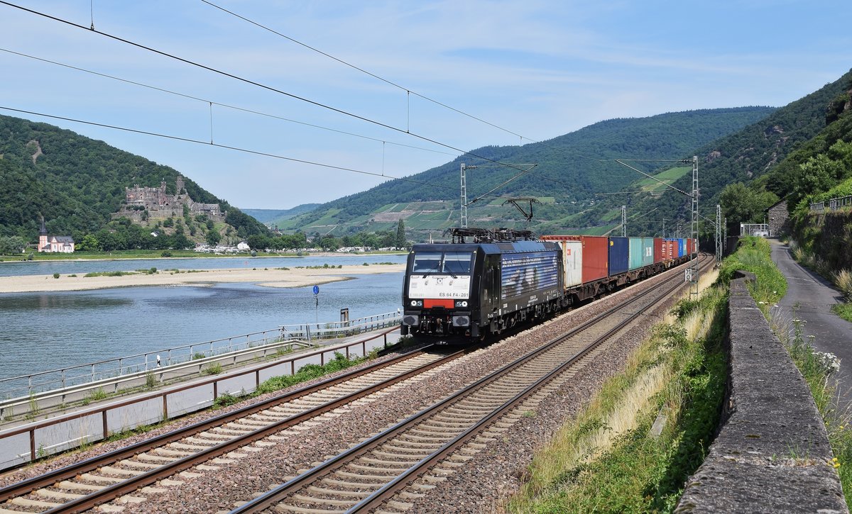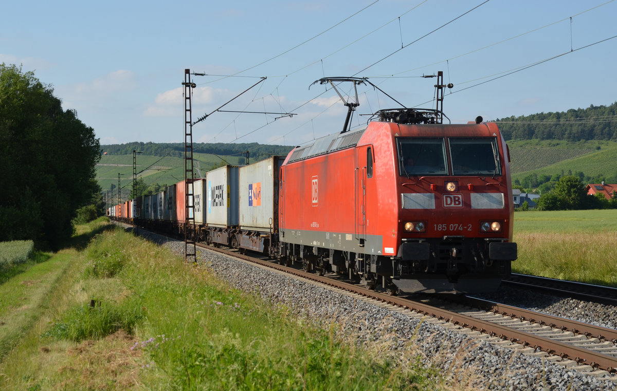 Am frühen Abend des 13.06.17 führte 185 074 einen Containerzug durch Retzbach-Zellingen Richtung Würzburg.
